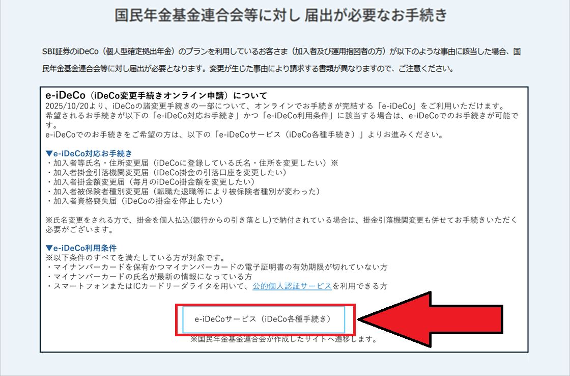 証券会社のiDeCoページから「e-iDeCoサービス」をクリック