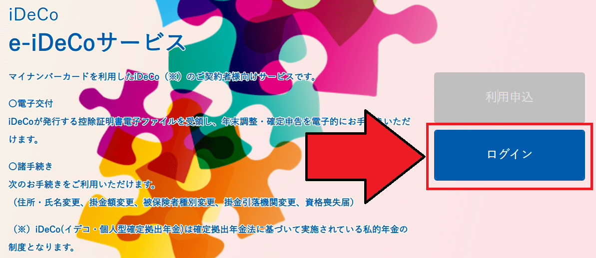 e-iDeCoサービスの「ログイン」ボタンをクリック