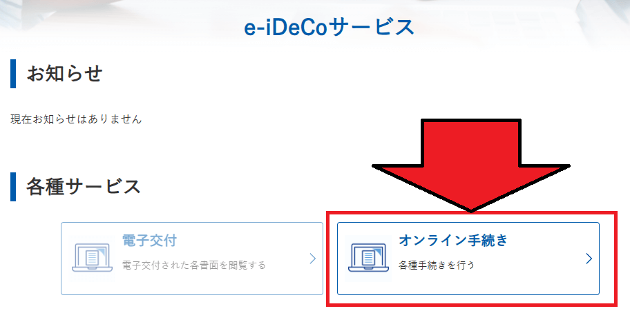 ステップ②:e-iDeCoサービスの「オンライン手続き」へ進む