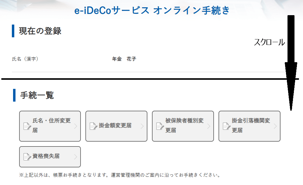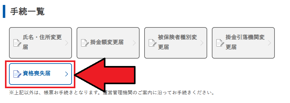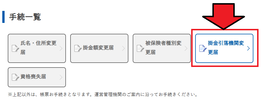 ステップ③:手続き一覧から「掛金引落機関変更届」をクリック
