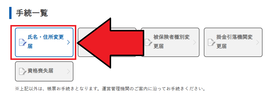 ステップ③:手続き一覧から「氏名・住所変更届」をクリック