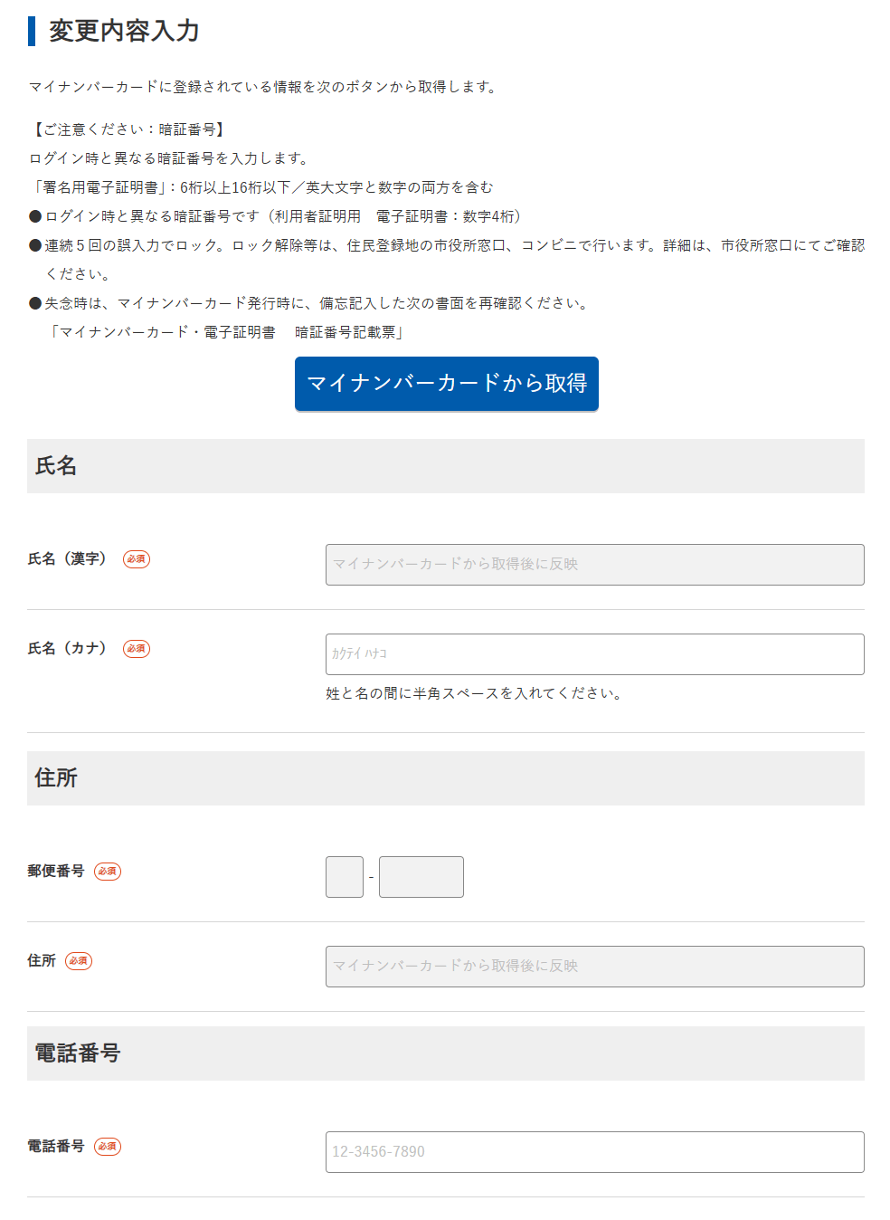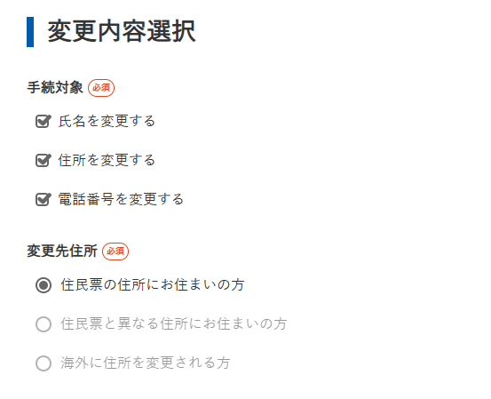 ステップ④:加入者等氏名・住所変更届から「変更内容」を入力