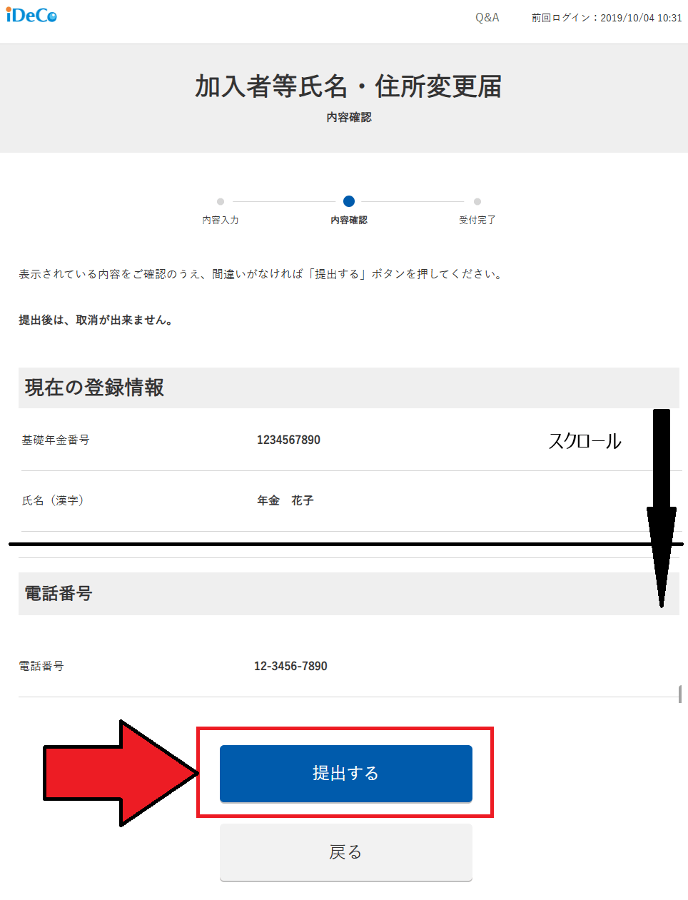 変更内容の入力が終わったら、下へスクロールして、「提出する」をクリック