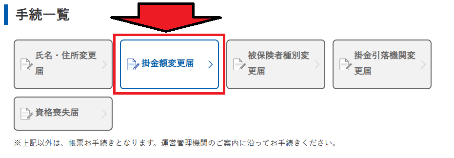 ステップ③:手続き一覧から「掛金額変更届」をクリック