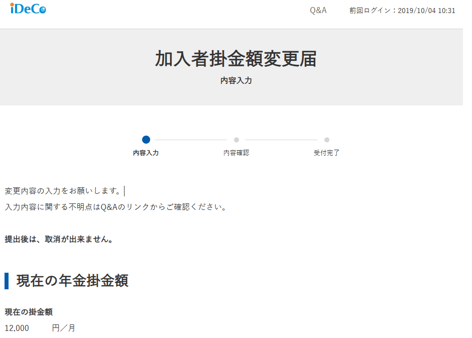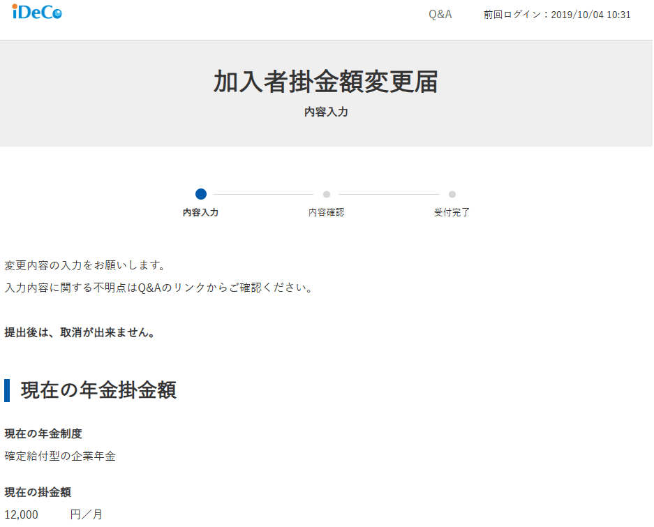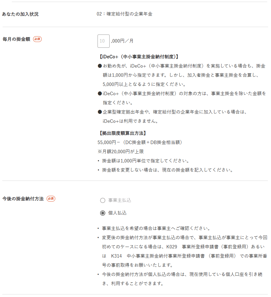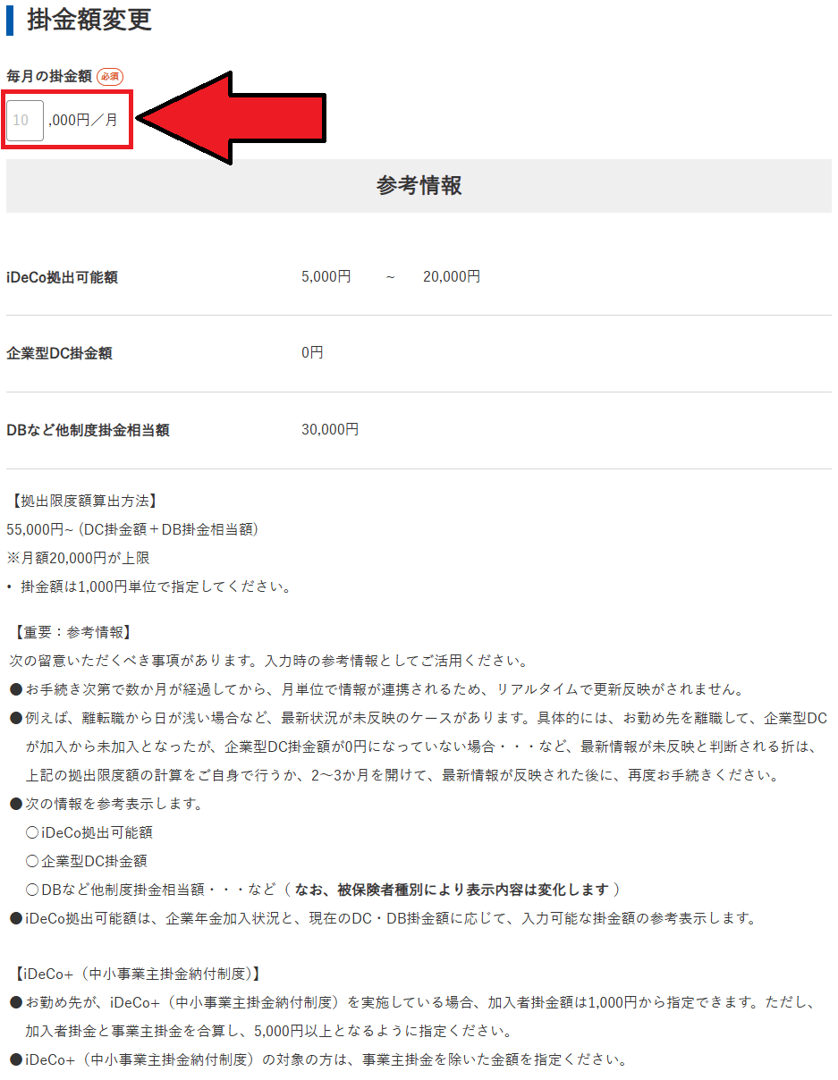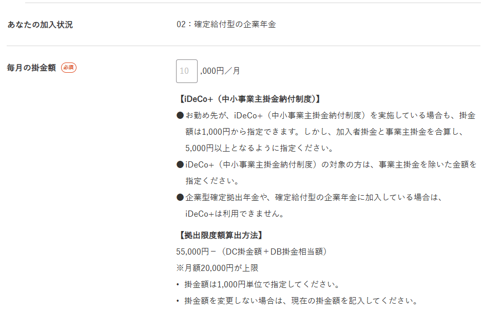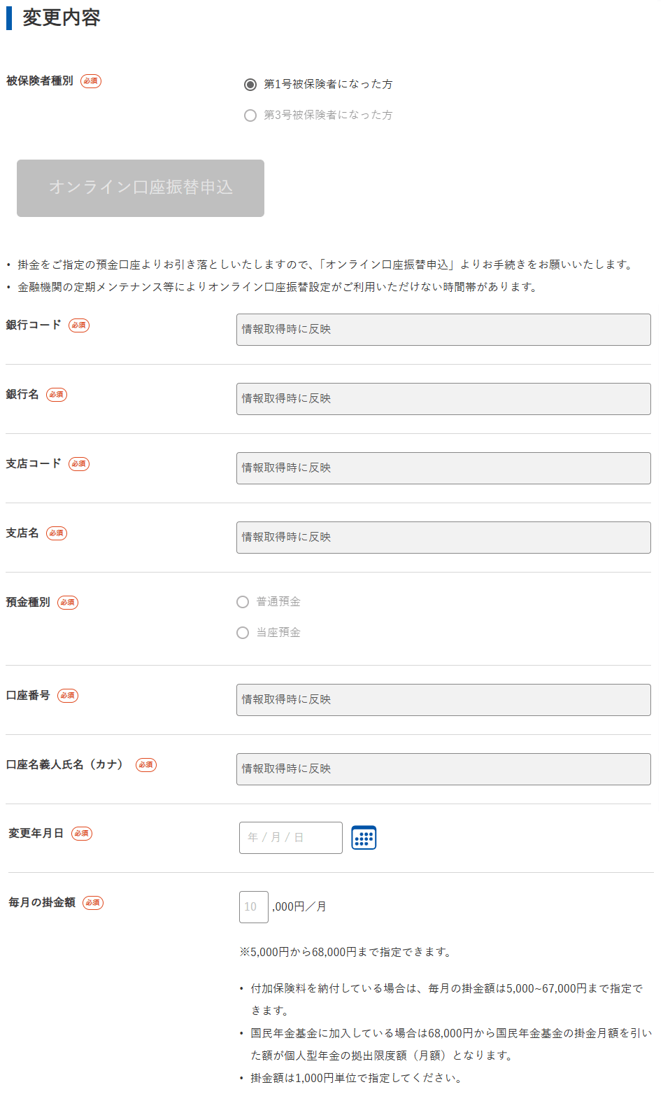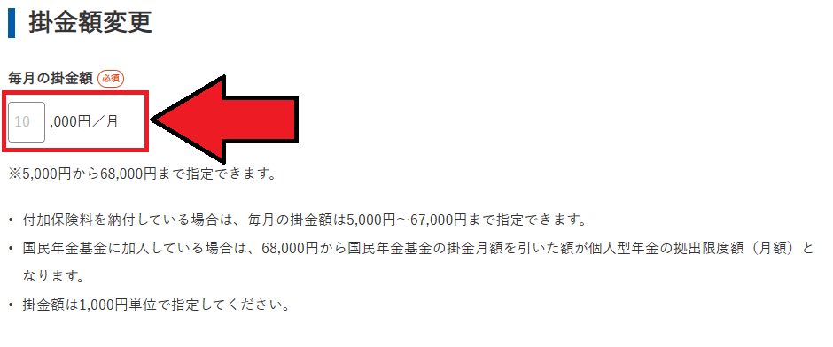 e-iDeCoの「掛金変更届」では、毎月の掛金額を変更できます。