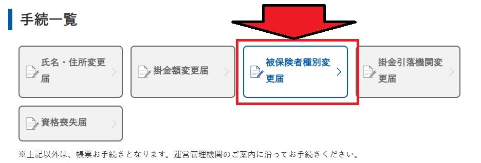 ステップ③:手続き一覧から「被保険者種別変更届」をクリック