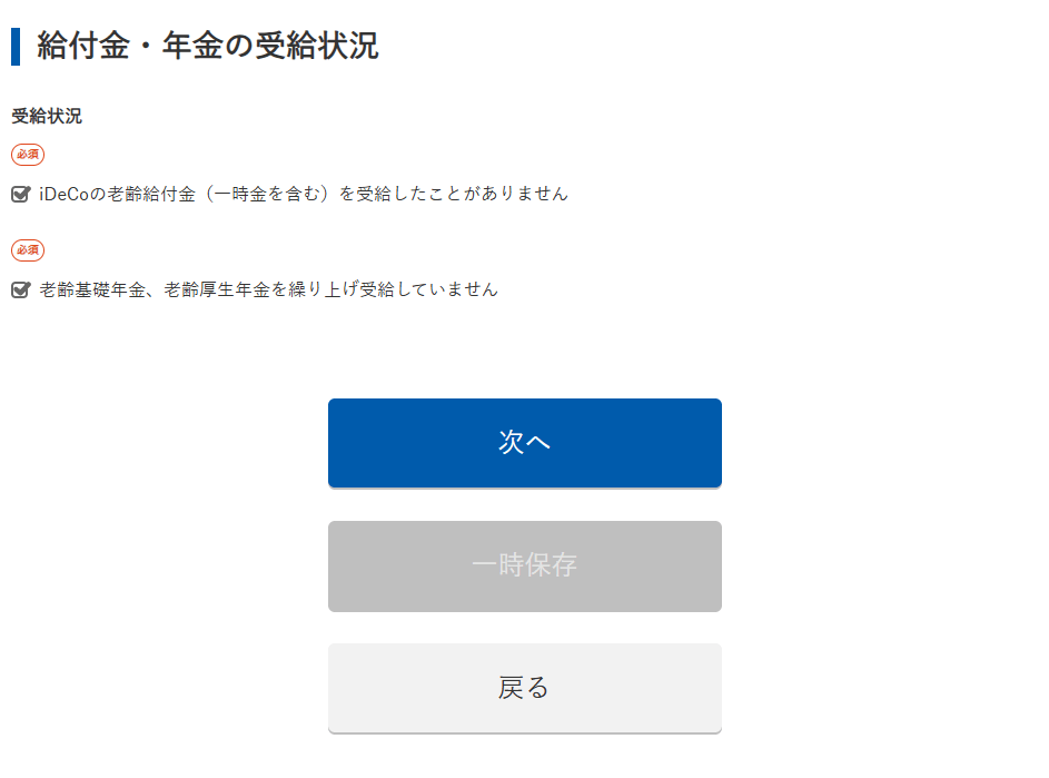 - iDeCoの老齢給付金(一時金を含む)を受給したことがない