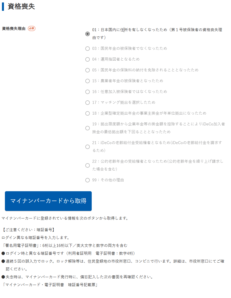 e-iDeCoで「加入者資格喪失届」の手続き方法
