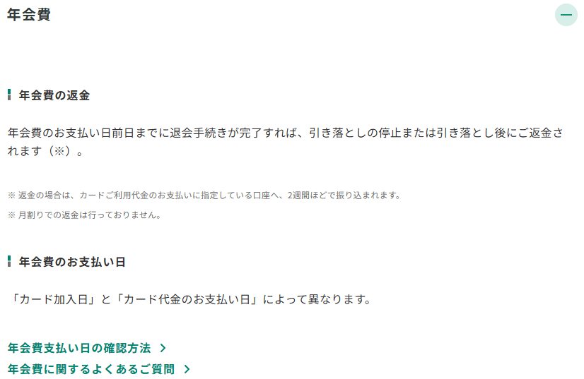 もし、年会費がかかるカードを利用している場合、年会費支払日「前日まで」に解約すれば、返金されます。