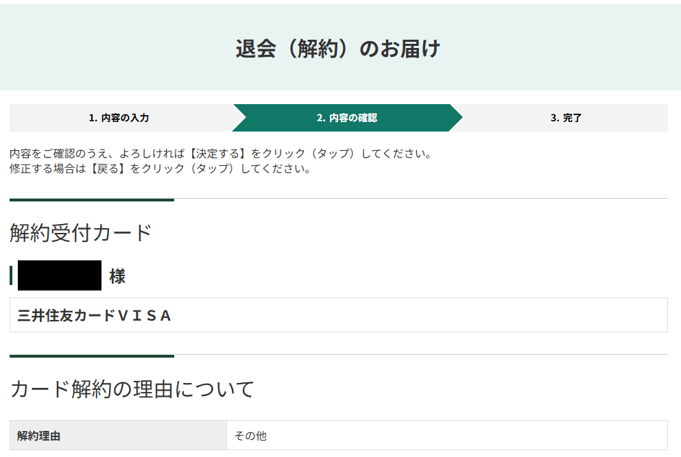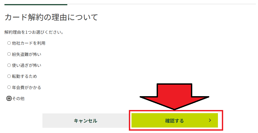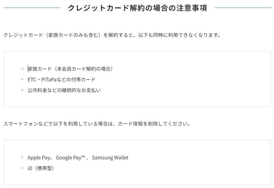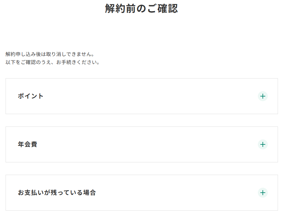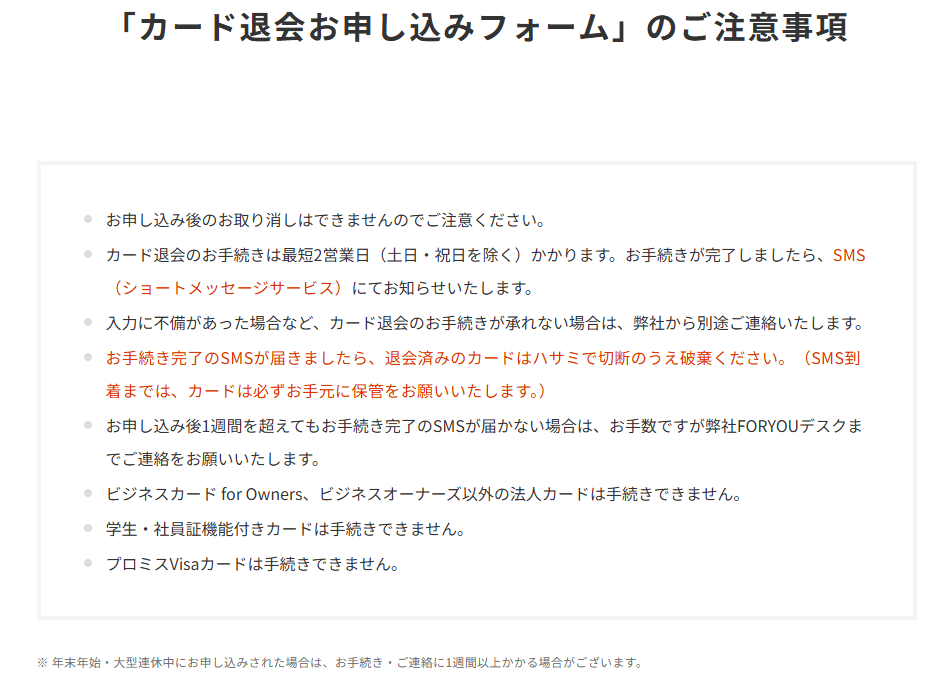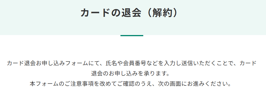 「カード退会お申し込みフォーム」のご注意事項を確認します