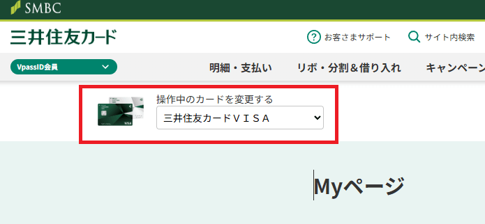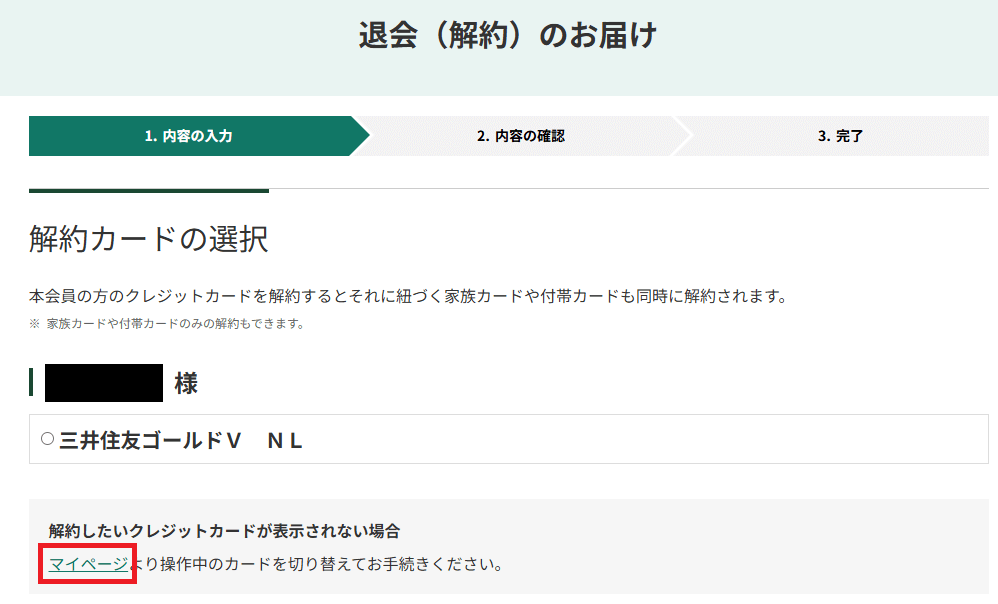 もし、解約したいカードでない場合「マイページ」リンクをクリックします