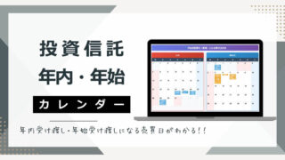 投資信託の年内最終売却日・年初初日買付はいつまでか、がわかるカレンダーです。旧NISAからの移管や新NISAでの売買の「受渡日」基準の期限の参考にしてください。